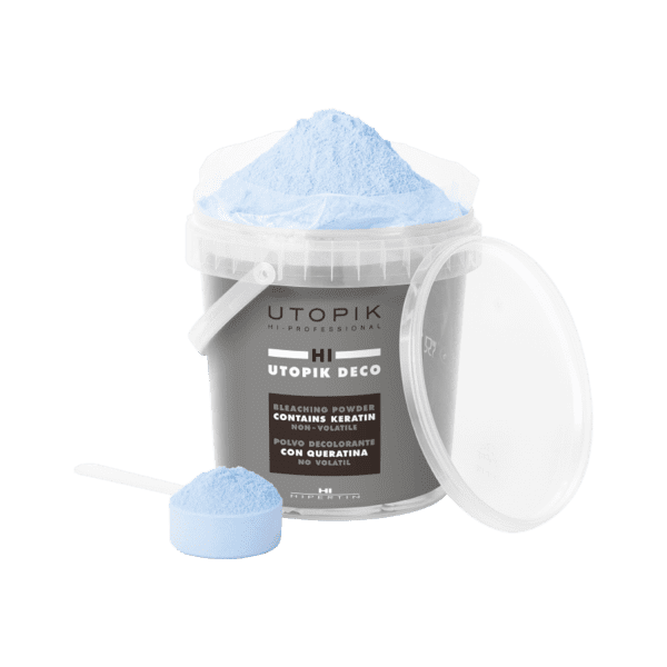 Utopik Deco; Hipertin bleaches allow you to achieve maximum whitening with extreme hair care. Its homogeneous and stable, non-volatile formula prevents dust from forming during mixing.